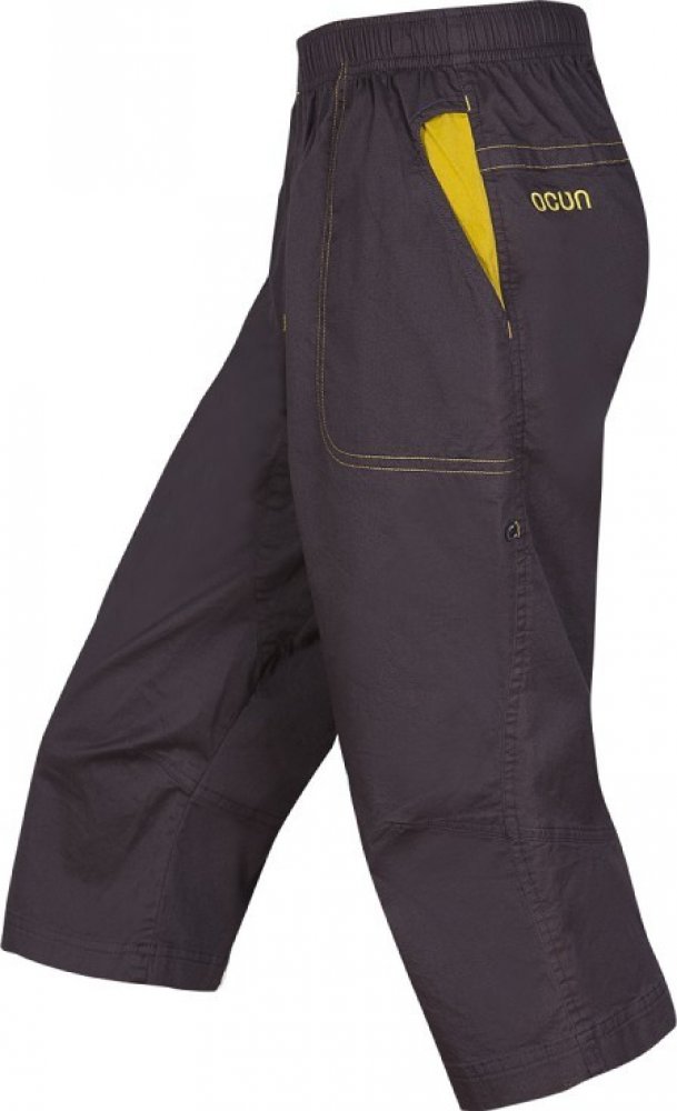 Pánské tříčtvrteční kalhoty Ocún Jaws: pohodlného střihu pro lezení a bouldrování. Jsou ušité z příjemné a prodyšné bavlny.Díky příměsi Elastanu se při praní nestrážejí a jsou stálobarevné. Mají pružný pas se stahovací šňůrkou, tvarovaná kolena, dvě přední a jednu zadní kapsu, stahování nohavic a dvě boční poutka na kartáčky.