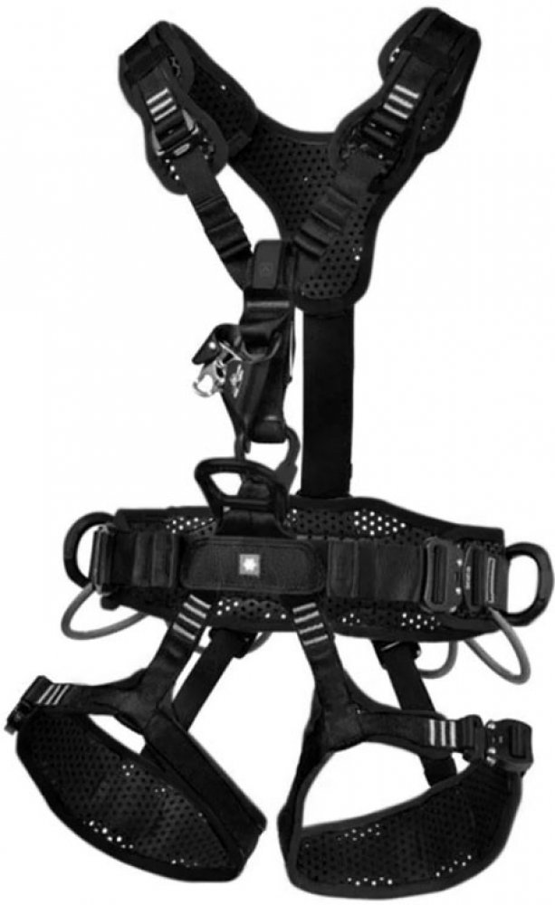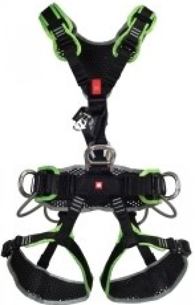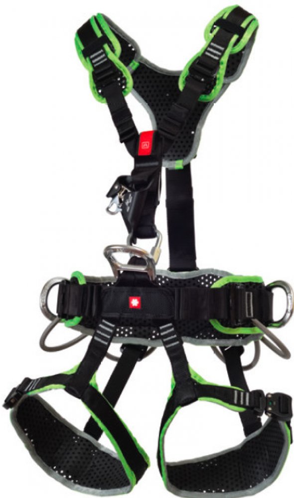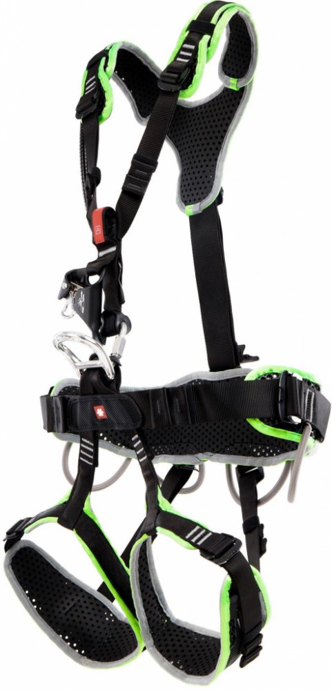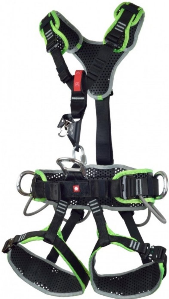 Samozřejmě nechybí přípojné body pro lavičku a karabinové sloty na nohavičkách pro umístění lan mimo pracovní prostor.