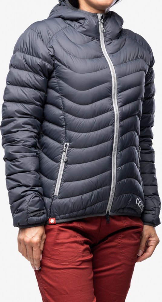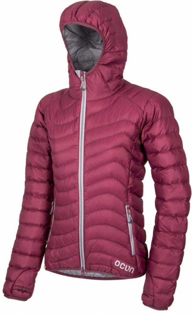 Dámská bunda Ocún Tsunami ECO Women je plněna kachním peřím. Uvnitř bundy je rozměrná kapsa na lezečky.