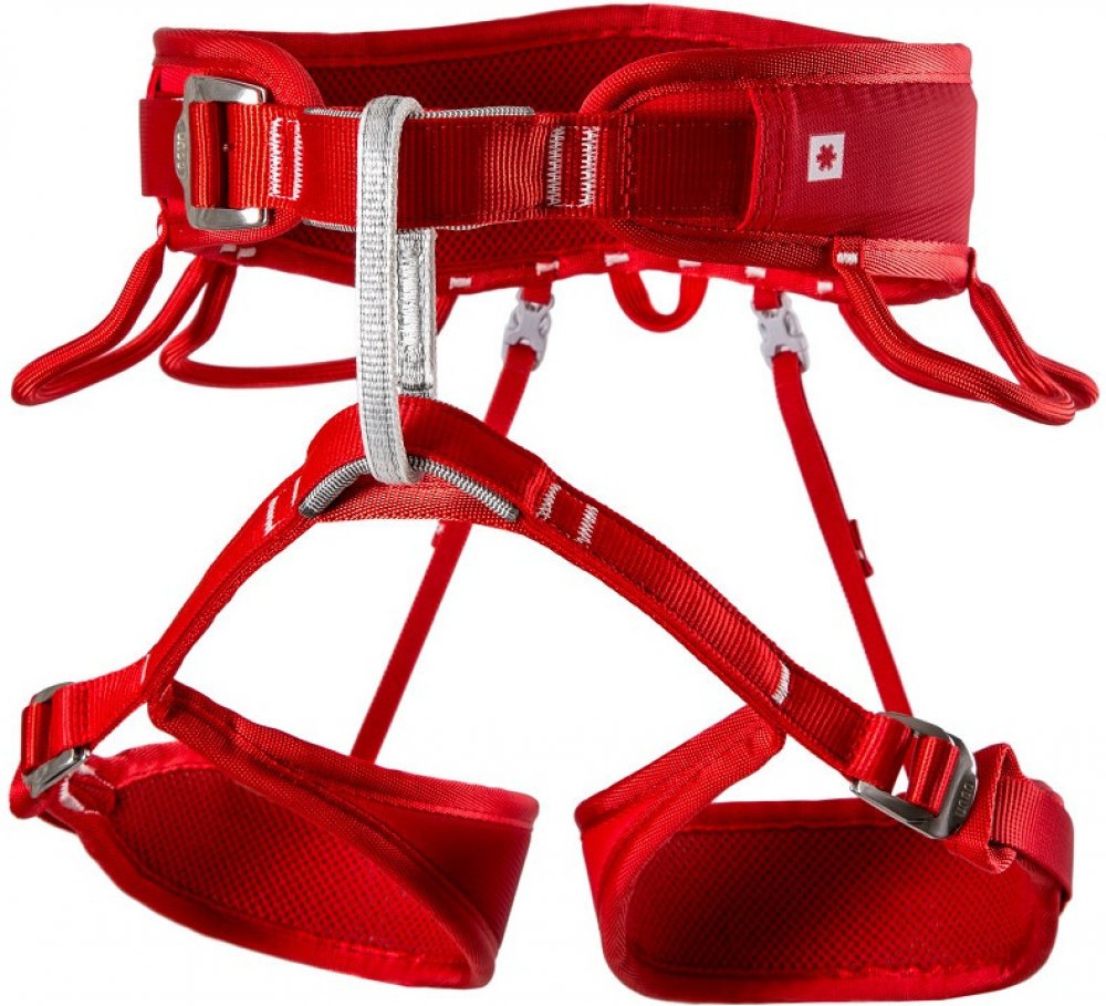 Nadstandardní bezpečí je zajištěno samosvornými přezkami a nerozebíratelnými spoji, které minimalizují riziko špatného navázání. Tvar úvazku je přizpůsoben lidské geometrii, takže optimálně rozkládá tlak při dlouhém visení a nebo v případě pádu.
