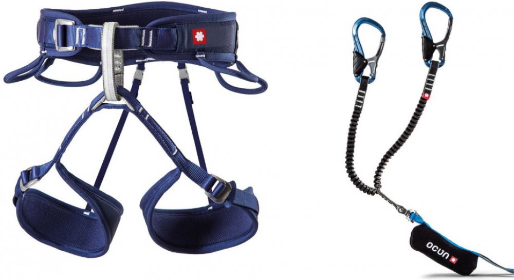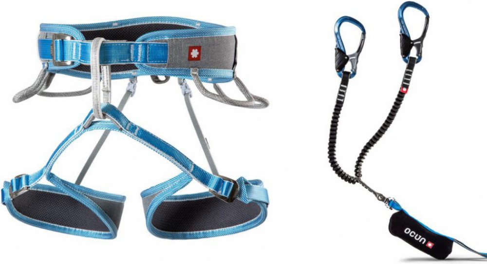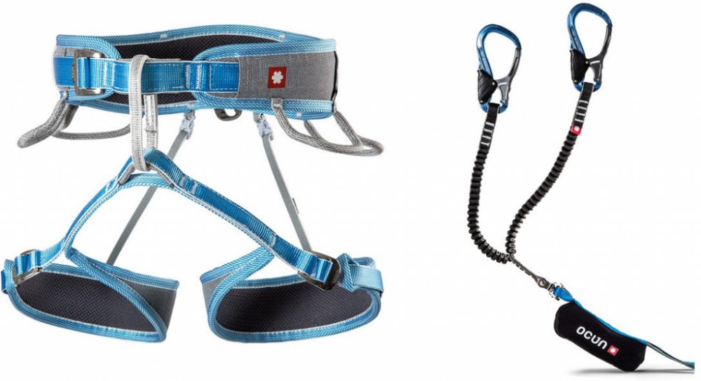 Ferratový set od společnosti Ocun obsahující lezecký úvazek Twist Tech a tlumič pádu Captur Pro Swivel.