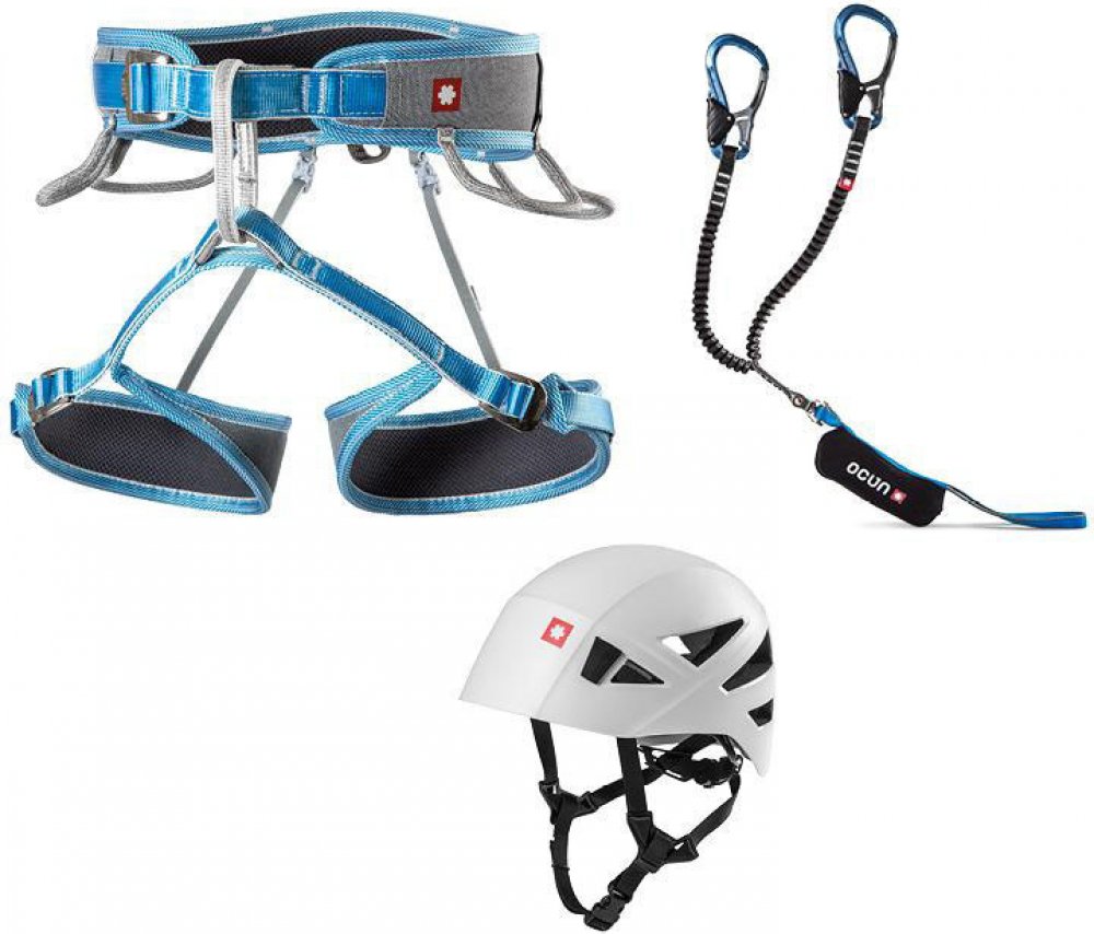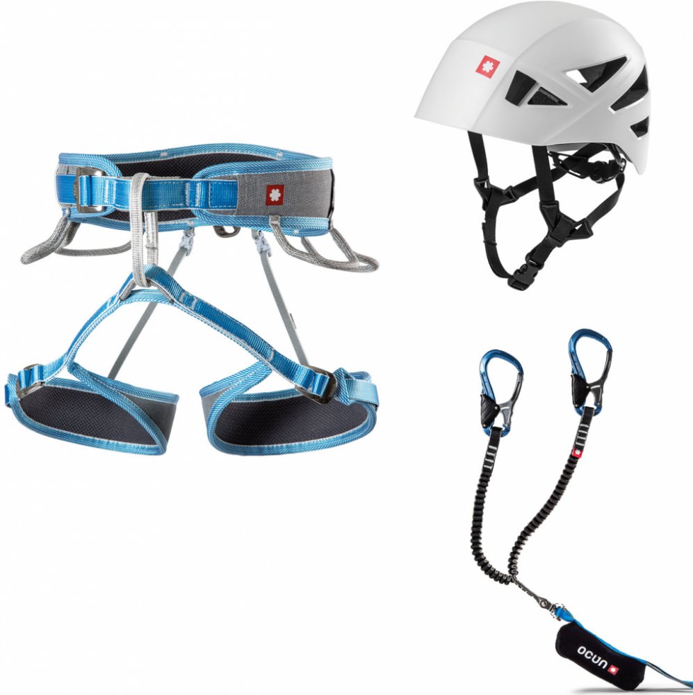 Ocún Via Ferrata Twist Tech ECO Captur Pro Swivel Shard - je set, který obsahuje technický lezecký sedák, přilbu a ferratový set, který má obrtlík proti zamotávání ramen. Obsahuje pohodlný sportovní lezecký úvazek, který můžete využívat na ferraty i na lezení na umělé stěně nebo na skalách v přírodě a ferratový tlumič, který má velké dlaňové karabiny a obrtlík.Sedací úvazek Ocún Twist Tech ECO - s možností nastavit nohavičky. Je vhodný do sportovních cest, ale hlavně pro vícedélkové lezení a pro zimní výstupy, kdy budete potřebovat seřizovat sedák kvůli více vrstvám oblečení. Disponuje mírně rozšířeným pasem pro měkké pády a má 5 poutek pro nacvaknutí všeho potřebného materiálu (expresek, friendů, vklíněnců). Plně polstrovaný sedací úvazek se stavitelnými „D“ nohavičkamiPřezky: 1×30mm(pas) a 2×20mm(nohavičky) nerez Slide Lock přezkyNosiče: 5 nosičů materiáluInitial safety system – ISS (unikátní bezpečnostní spojení nohaviček)Movable Waist System – MWS (posuvné polstrování v pase)Váha sedáku: 380 g (XS-M)EN 12277CEUIAAMade in EUVelikostní tabulka:Obvod pasu: XS-M = 63–90 cm, M-L=69–100 cm, L-XL=77–110 cmObvod nohou: XS-M = 45–60 cm, M-L=49–68 cm, L-XL=53–72 cmOcún Captur Pro Swivel – je ferratová brzdy s obrtlíkem proti zamotání ramen pro jištění na ferratách. U setu jsou použity tkz. dlaňové karabiny s větší světlostí, nebudete si tak rozdírat klouby prstů o ocelové lano. Mají zámek, který pokud nedržíte karabinu v ruce je zablokován v zavřené poloze a otevře se až při sevření v ruce, když ji potřebuje přepnout. Nová harmoniková konstrukce.Ferratový set pracuje na principu párání se švu. Splňuje normu EN958, kdy maximální rázová síla je při dynamické zkoušce pod 6 kN během celého průběhu testování.Y konstrukceHarmoniková konstrukce pružných ramen zaručenou pevností min. 15 kN i po cyklickém namáhání (testováno po 50 000 cyklech)Pracovní rozsah je v intervalu 40 – 120 kgPárací tlumič pádové energie v odolném polyesterovém pouzdřeCentrální oko pro účely odsednutíObrtlík - swivel proti zamotání ramenMinimální délka ramen s karabinami: 50 cmMaximální délka ramen s karabinami: 100 cmDlaňové karabiny key-lock, typ „K“ dle CE EN 12275Hmotnost: 545 gCE, EN 958 UIAA 128 (tlumič)CE, EN12275 UIAA 121 (spojky)
