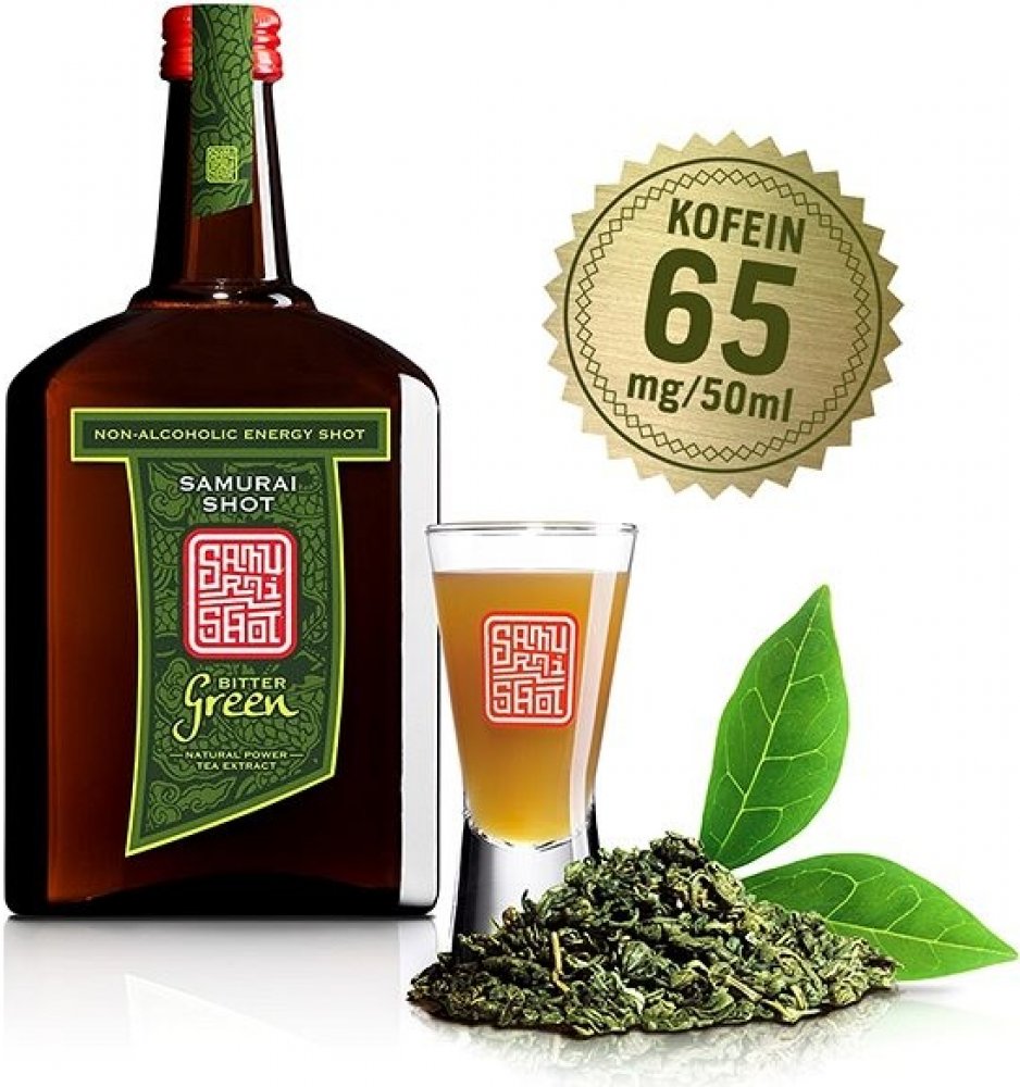 Změna barevného stylu šablony pro potraviny Samurai ShotBitter Green, nealko, 0,5 l Nápoj Samurai Shot Bitter Green je vhodný pro všechny sportovce i osoby s náročnou fyzickou či psychickou prací. Obsahuje tein ze silného čajového výluhu, díky čemuž se v objemu 0,05 l ukrývá 65 mg čajového kofeinu. Nápoj Samurai Shot je možné konzumovat samotný, zředit ho se sodovkou nebo džusem, s horkou vodou, čímž vznikne teplý čaj, či přidat do míchaných nápojů nebo koktejlů. Příchuť Bitter Green v sobě snoubí svěžest vietnamského zeleného čaje s ovocnou vůní, hořko-říznou chutí na začátku a sladkou bylinnou dochutí cesmíny velkolisté. Klíčové vlastnosti nápoje Samurai Shot Bitter Green Nealkoholický nápojS příchutí Bitter GreenObsahuje tein z čajového výluhuSamurai Shot s objemem 0,5...