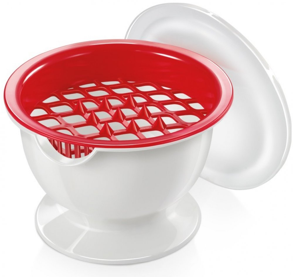 je dodáván s víčkem pro hygienické uložení nespotřebované části granátového jablka nebo semínek v lednici.