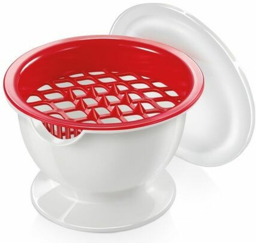 je dodáván s víčkem pro hygienické uložení nespotřebované části granátového jablka nebo semínek v lednici.