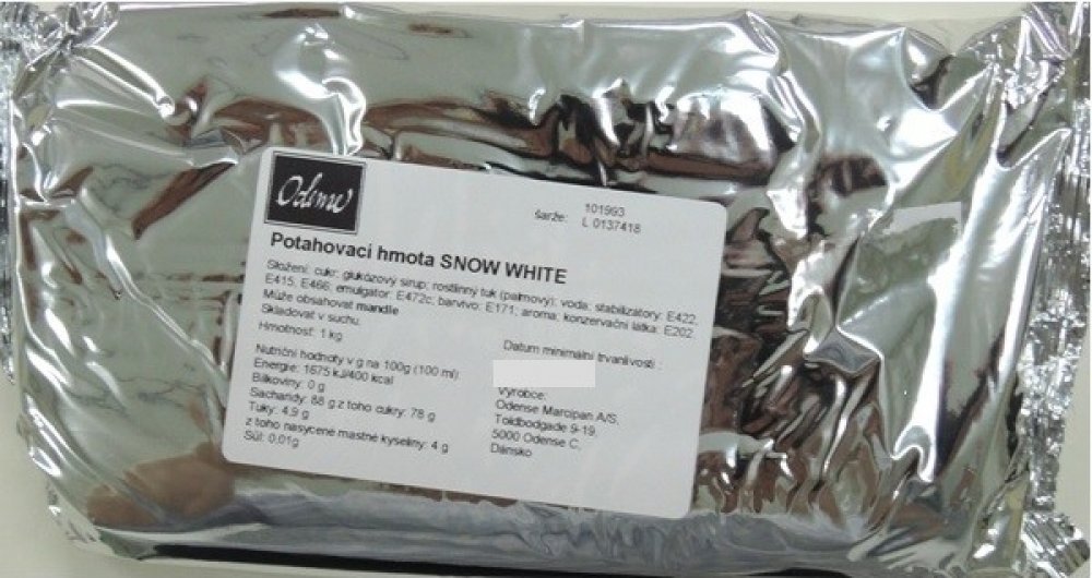 Cukrová potahovací hmota bílé barvy je určena k potahování dortů. Po propracování lze hmotu barvit potravinářským barvivem.