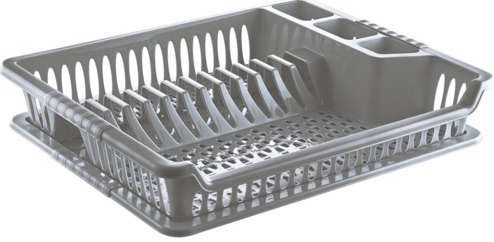 Je členěný na několik sekcí – má tři zásobníky pro příbory, stojan na talíře a volnou část pro ostatní nádobí, jako jsou například misky či skleničky.