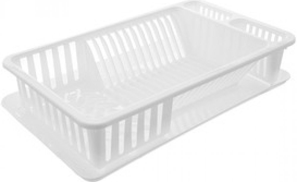 Odkapávač na nádobí s tácem. Členěný na sekce na příbory, talíře a na ostatní nádobí. Materiál: plast PP. Rozměry: 45,5x27,5x10 cm.