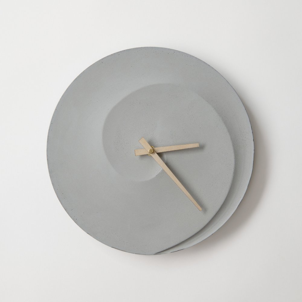 Minimalistické betonové hodiny Spirála o průměru 30 cm – ručně vyrobené v České republice.