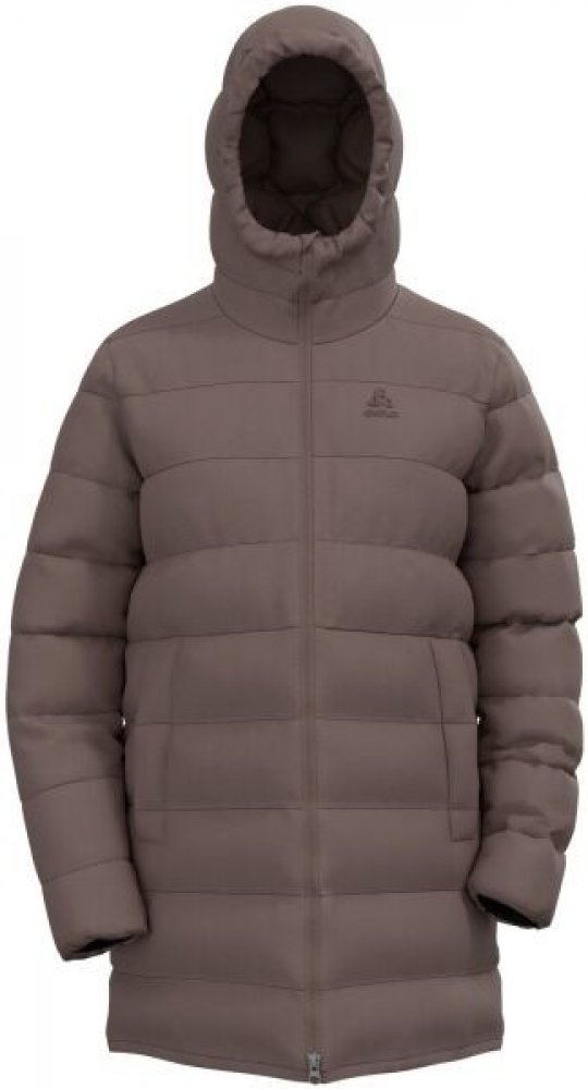 hnědá jednobarevné parky 91 % rec.polyester 9 % elastan zimní slim fit Odlo s kapucí dlouhé péřové na zip s běžnou kapucí