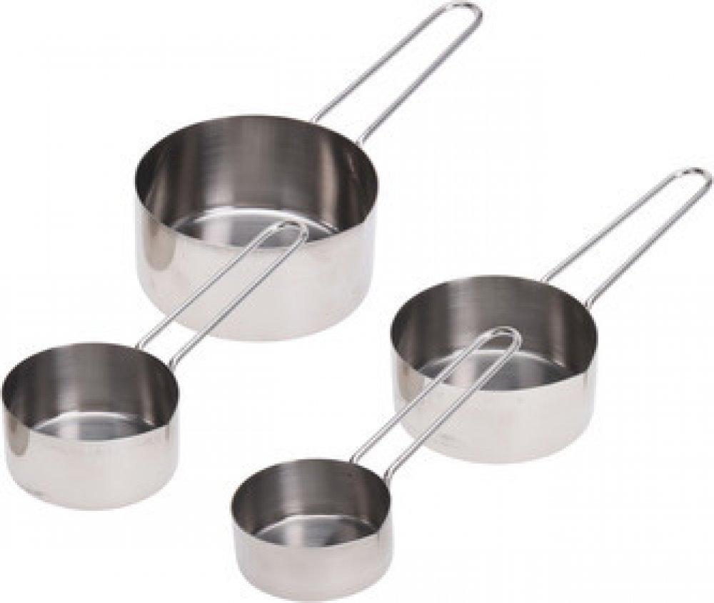 Sada 4 nerezových odměrek s rukojetí je ideálním pomocníkem pro přesné odměřování ingrediencí jako cukr, mouka nebo mleté ořechy. Díky praktickému designu se jednotlivé odměrky dají složit do sebe, co