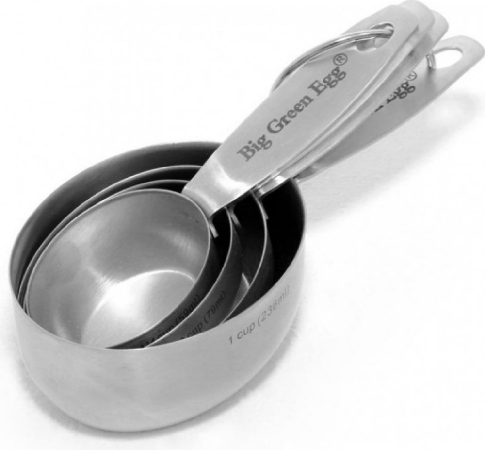 Odměrkové misky Big Green Egg vyrobené z nerezové oceliBalení obsahuje 4 kusySoučástí balení je spojovací kroužek, který drží všechny misky pohromadě a lze je pohodlně zavěsit na háček Objem misek: 1/4 šálku - 59 ml, 1/3 šálku - 79 ml, 1/2 šálku - 118 ml a 1 šálek - 236 mlVhodné do myčky na nádobí