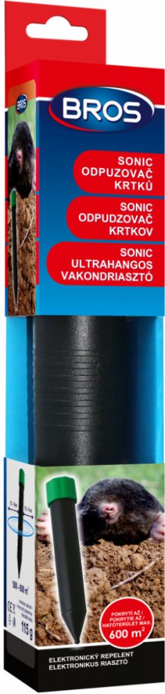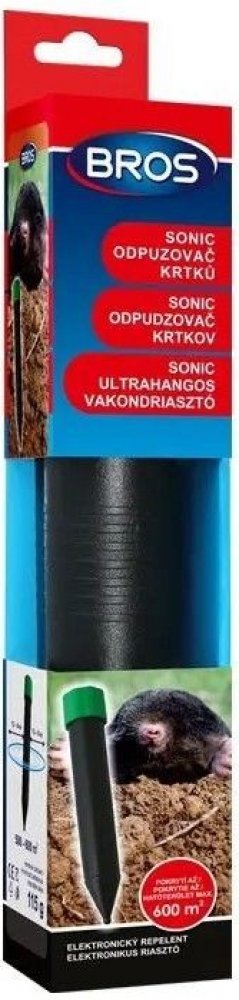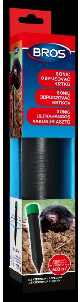 Bros Sonic odpuzovač krtků vysílá zvukové vlny a vibrace, které jsou pro krtky, hraboše a jiné hlodavce nepříjemné. Prostor, kde se vibrace vyskytují, škůdci opouštějí.