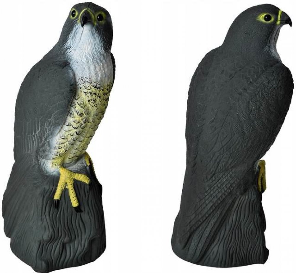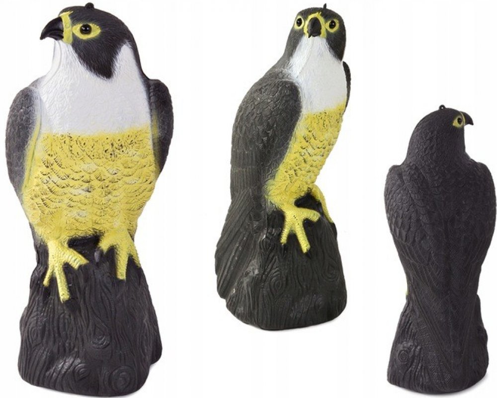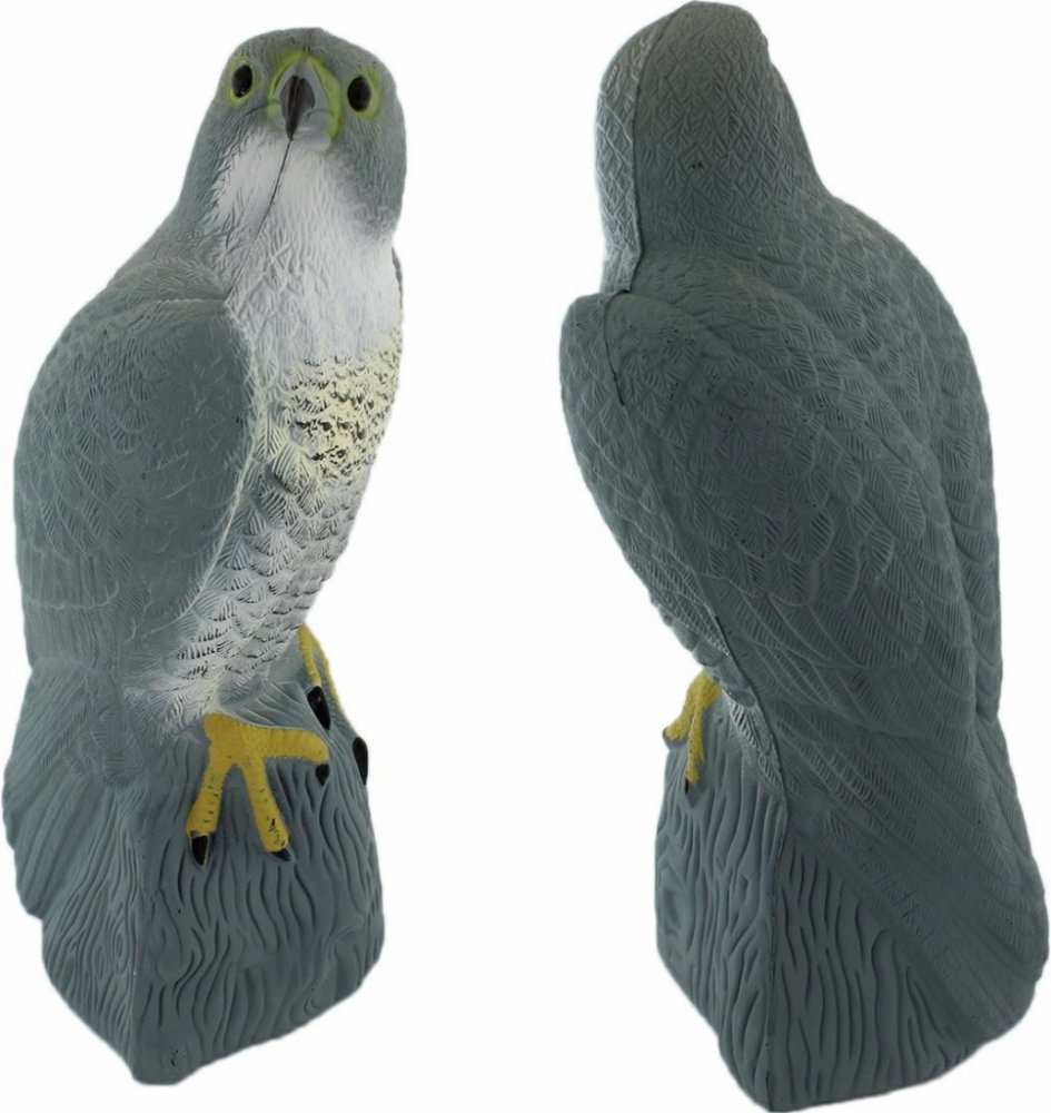 Realistický plastový sokol v životní velikosti - mimořádně účinný odstrašující prostředek proti holubům, špačkům, apod.