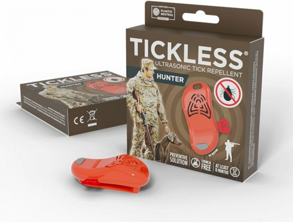 Tickless je ideální řešení pro ochranu proti klíšťatům. Funguje na principu vysílání pulzních ultrazvukových impulsů o frekvenci 40 kHz. Ultrazvuk vysílaný zařízením blokuje smyslové orgány klíšťat, takže se nemohou zaměřit na člověka a jsou tak udržována v bezpečné vzdálenosti. Tickless je pro člověka i domácí zvířata zcela neškodný. Ochrana proti klíšťatům je velmi důležitá zejména na jaře a v létě, kdy se výrazně zvyšuje riziko kousnutí a napadení tímto parazitem. V minulosti se opakovaně doporučovalo nosit oblečení s dlouhými rukávy a nohavicemi, ale to problém nevyřešilo. Během horkého počasí to bylo obzvláště nepříjemné; navíc hlava a ruce zůstávaly odkryté. Ani kontrola celého těla po procházkách v lese nebo na loukách nechránila před kousnutím a nemocemi přenášenými klíšťaty. Jinými slovy, jako metoda ochrany proti klíšťatům byla naprosto neúčinná. Prevence místo léčby Jak se účinně chránit před klíšťaty? Ne dlouhým oblečením, ne sprchou po procházce a ani chemickými přípravky. Chemikálie mohou fungovat, ale jejich aplikace je obtížná, často nepříjemně voní a možnou komplikací jsou alergie na složky chemikálií. Navíc nepomáhají nad vodou, protože po každém koupání je nutné je znovu aplikovat. Tickless Hunter řeší všechny tyto problémy. Nevydává žádný zápach, neobsahuje žádné chemické přísady a, po koupání, stačí zůstat v dosahu jeho působení, který je až 3 metry, abyste mohli využívat jeho ochranu. Navíc, po zapnutí, Tickless Hunter funguje nepřetržitě po dobu 3,000 hodin, což Enough pokrývá celé období, kdy hrozí nebezpečí klíšťat. Stačí, aby se zařízení nacházelo v dosahu, a funguje bez ohledu na to, jaké máte oblečení nebo jaké jsou povětrnostní podmínky. Samotné zařízení není vodotěsné, ale je odolné proti vlhkosti a po vysušení je plně funkční. Toto je nejlepší způsob, jak zabránit kousnutí, nikoli je léčit. Hunter je ideální pro... pro ty, kteří spěchají a nemají čas se stříkat nebo mazat chemickými přípravky, pro alergiky, pro nadšené cestovatele, lidé, kteří, z různých důvodů, nemohou používat chemické repelenty proti klíšťatům, milovníci kempování, Není nic jednoduššího než používat Tickless Hunter Použití repelentu Tickless Hunter je velmi snadné. Jednoduše vytáhněte kryt baterie a zkontrolujte, zda se LED dioda čtyřikrát rozsvítí. Pokud ano, zařízení již funguje a vydává ultrazvukové zvuky, které jsou pro lidi a zvířata neslyšitelné a zcela bezpečné. Dosah je až tři metry, ale je velmi důležité zařízení ničím nezakrývat. Tím se zvuky mohou volně šířit. Z tohoto důvodu je nejlepší připevnit jej na oděv nebo batoh, místo aby byl vložen do kapsy. Specifikace Doba působení: 3000 h Baterie: Baterie instalovaná v zařízení není vyměnitelná Dosah: 3 m Instalace Vytáhněte kolík Vodotěsnost: Vlhkost zařízení nepoškodí (IP13) -, se však vyhněte přímému kontaktu s vodou, protože Tickless není vodotěsný Mokré prostředí: V případě vlhkosti nebo namočení, zařízení vysušte Vyrobeno v souladu s normami Evropské unie. Zařízení má certifikovanou bezpečnostní značku CE.