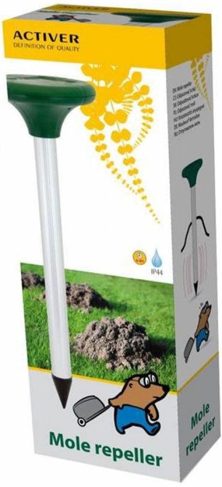 Odpuzovač krtků vydává vysokofrekvenční bzučivý zvuk, šířící se půdou a ruší nežádoucího obyvatele. Solární článek nabíjí baterii, která dodává energii pro vysílač impulzu.Dobíjecí zdroj je zabudován pod solárním článkem (jedná se o dobíjecí baterii typu AA).