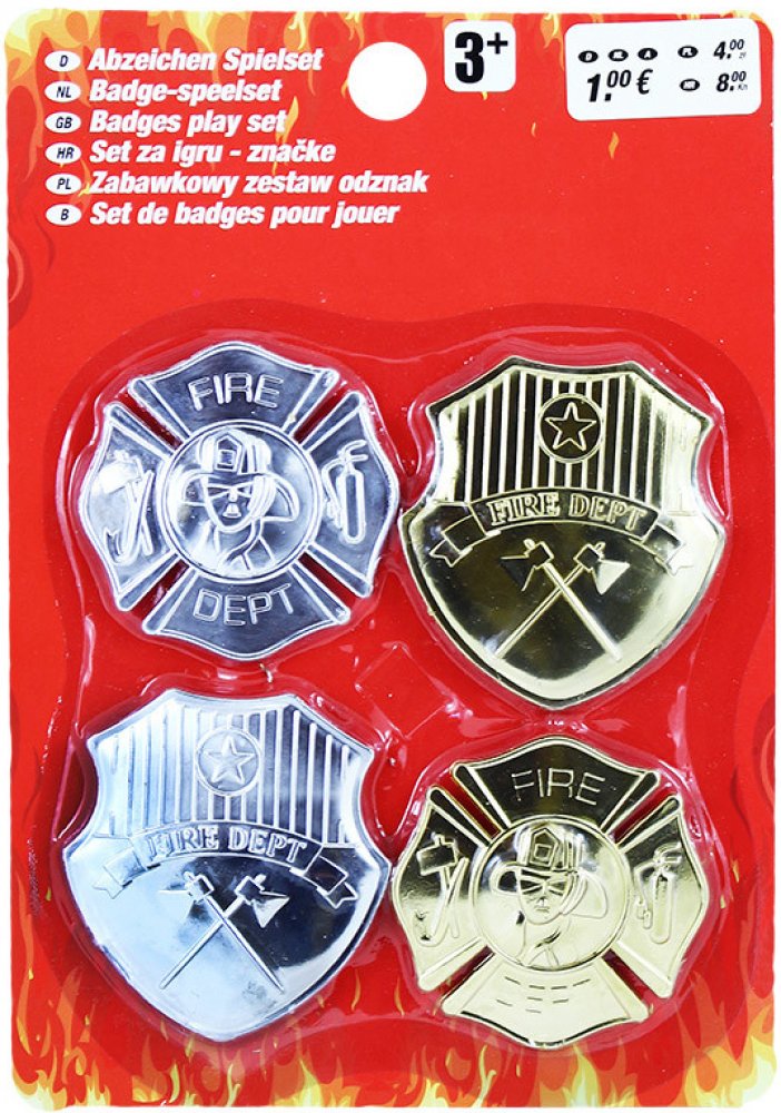 Sada 4 hasičských odznaků na blistru. Rozměry (balení) š x v x h:160x230x10 mm.