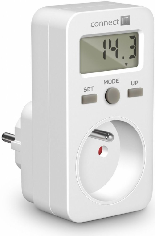 Digitální měřič CONNECT IT "PowerMeter" s jednoduchým designem slouží k měření spotřeby elektrické energie různých domácích spotřebičů. Měřič disponuje velkým LED displejem a jednoduchým ovládáním. Díky tomu je velmi přehledný a spolehlivý.