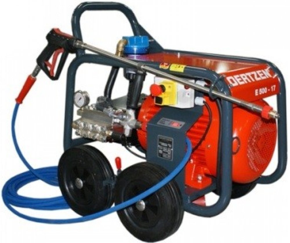 Profesionální robustní vysokotlaký stroj v pevném ocelovém rámu na podvozku s pracovním tlakem 500 Barů a množstvím vody 1.020 l/hod (17 l/min). Čisticí stroj vhodný pro těžkou práci, jako např. čištění fasád, sanace betonu, komunální služby apod.