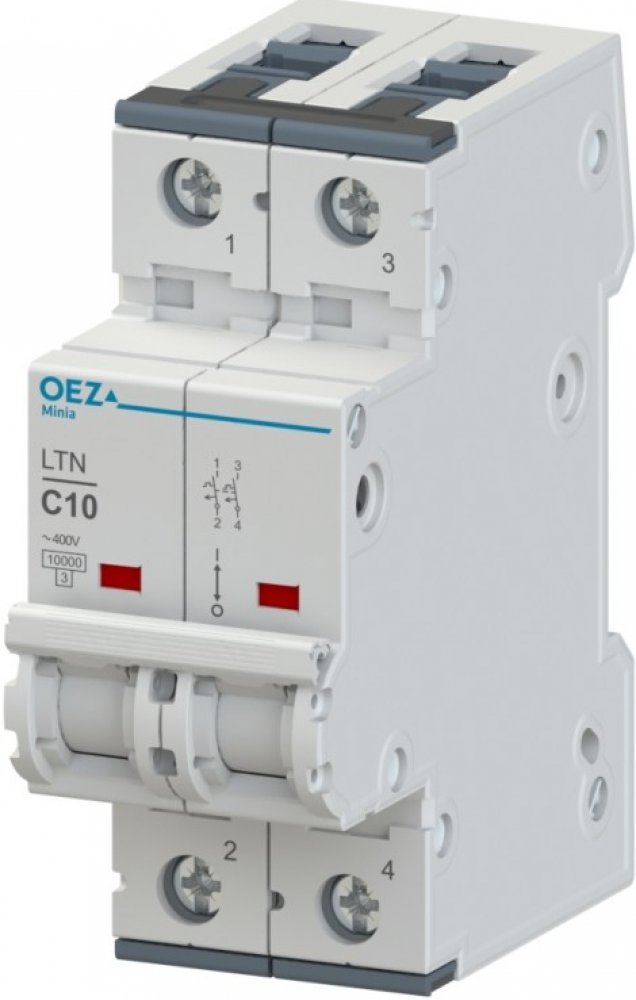 In 2 A, Ue AC 230/400 V / DC 144 V, charakteristika C, 2pól, Icn 10 kA Kód produktu: 11.016.221 Part no.: OEZ:41734 EAN: 8590125417347
