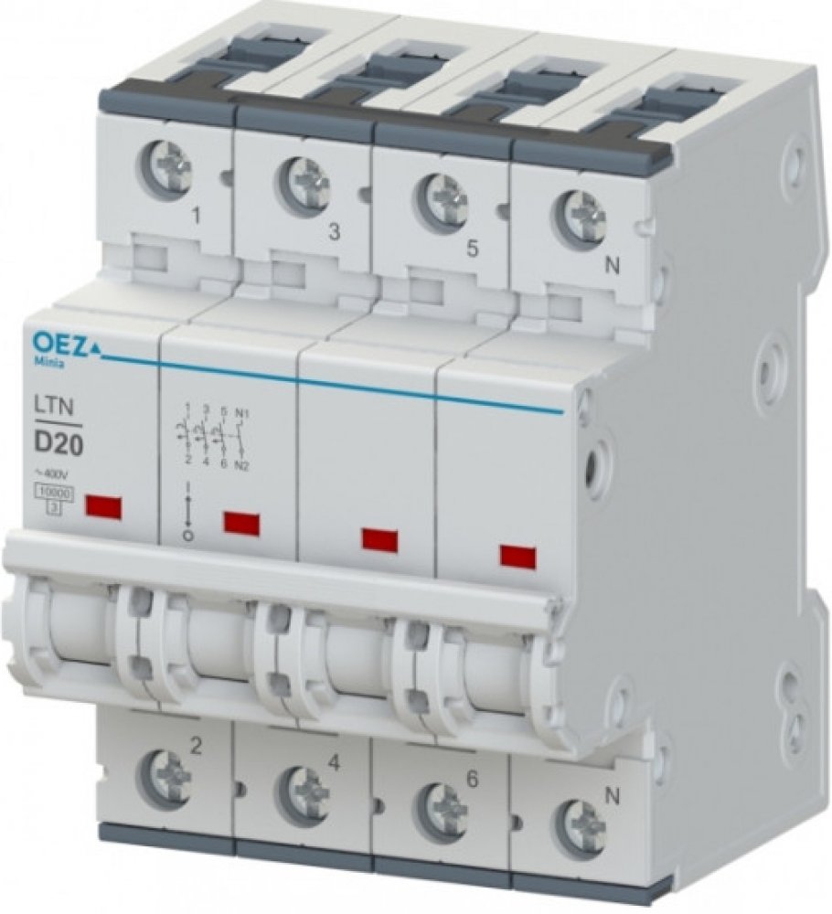 In 16 A, Ue AC 230/400 V / DC 216 V, charakteristika B, 3+N-pól, Icn 10 kA