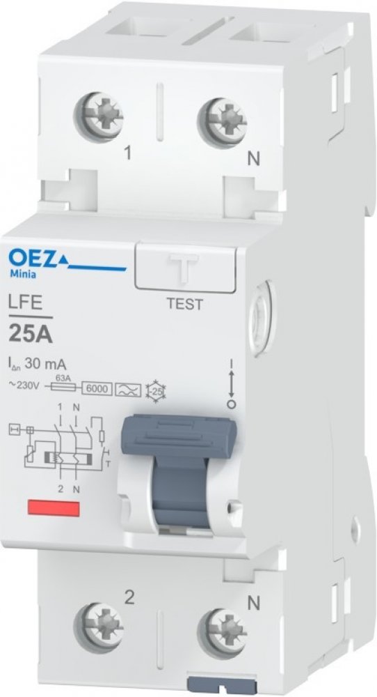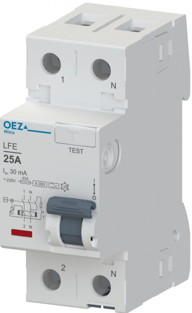 In 25 A, Ue AC 230 V, Idn 30 mA, 2pól, Inc 6 kA, typ A