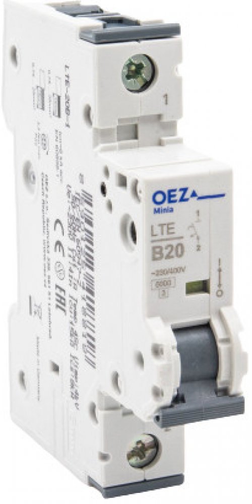 OEZ jistič Minia LTE-20B-1 Jistič Minia se využívá k jištění kabelů a vodičů proti přetížení a zkratu a na jištění vedení elektrických obvodů se zařízeními nezpůsobujícími proudové rázy.Přívod: shora i zdolaProvozní teplota okolí: od -25 ° C do + 55 ° CVlastnosti:Charakteristika: BJmenovitý proud: 20AVypínací schopnost: 6kAJmenovité napětí: 230/400 AC; 48 V DCMaximální předřazená pojistka: 100 A gLStupeň krytí: IP20Průřez připojovaných vodičů: 1-25 mm2Počet pólů: 1Záruka: 24 měsícůHmotnost: 0.152 kg