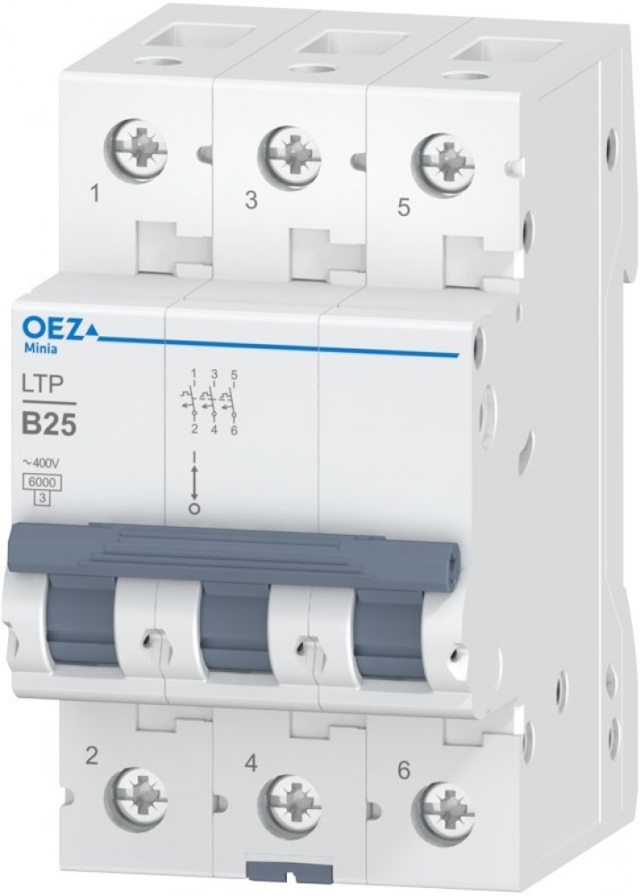 In 25 A, Ue AC 230/400 V / DC 180 V, charakteristika B, 3pól, Icn 6 kA Kód produktu: 11.487.683 EAN: 8590125422457