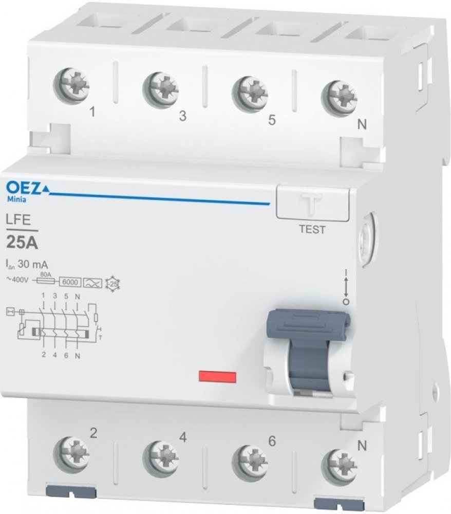 Technické parametry:Jmenovitý proud: 25 AJmenovitý reziduální proud: 30 mATyp napětí: ACJmenovité pracovní napětí: AC 230/400 VMin. jmenovité napětí AC: 195 VMax. jmenovité napětí AC: 250/440 VJmenovitý podmíněný zkratový proud: 6 kAJmenovitá zapínací a vypínací schopnost: 800 AJmenovitý kmitočet: 50 HzRázová odolnost: 0,25 kAElektrická trvanlivost: 10000 cyklůZpoždění při vypnutí: NeSelektivita: ...