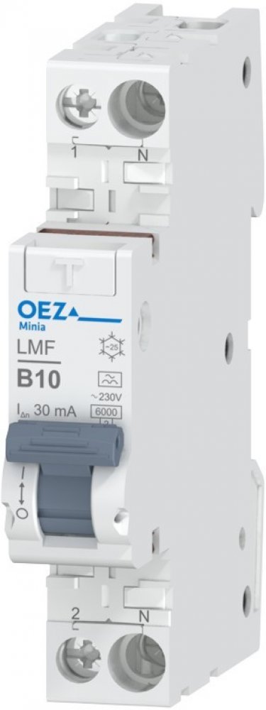 OEZ LMF-10B-1N-030A /46663/ proudový chránič s nadproudovou ochranou 10A B 30mA 1+N 1modul 6kA TYP A