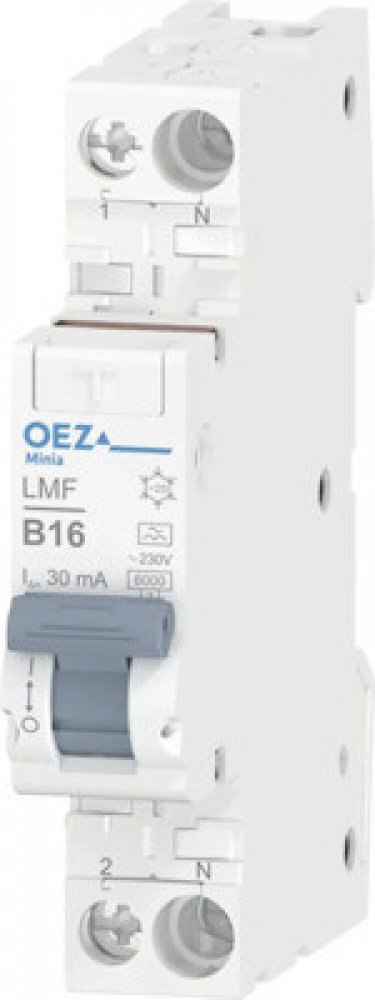 Jističochránič 2 pólový OEZ řady LMF - In 16 A, Ue AC 230 V, charakteristika B, Idn 30 mA