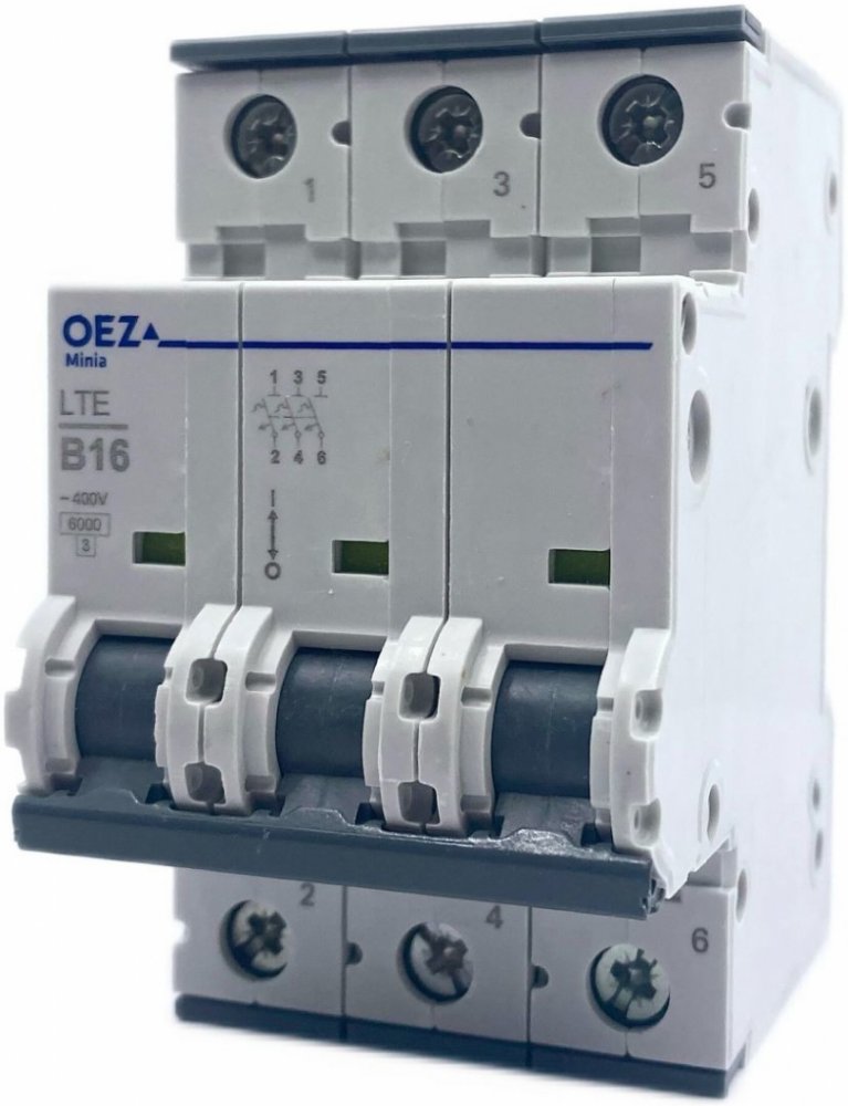 Jistič LTE-16B-3 značky OEZ je třípólové ochranné zařízení určené pro jištění třífázových i jednofázových elektrických obvodů v domácnostech, průmyslu a dalších instalacích. S jmenovitým proudem 16 A a charakteristikou B je navržen pro rychlou reakci při přetížení nebo zkratu, což ho činí ideálním pro ochranu běžných spotřebičů a osvětlení. Jeho zkratová vypínací schopnost 6 kA zajišťuje bezpečné odpojení i v případě silných proudových špiček. Díky šroubovým svorkám a montáži na standardní DIN lištu je jeho instalace snadná a rychlá. Jistič je kompatibilní s napětím AC 230/400 V a DC až 216 V, což rozšiřuje možnosti jeho použití i v DC obvodech. Je vyroben z odolných materiálů a odpovídá stupni znečištění 2, takže je vhodný i do běžně náročných provozních podmínek. Jeho kompaktní rozměry a spolehlivá konstrukce z něj činí praktickou volbu pro jištění elektrických zařízení, přičemž poskytuje vysokou míru bezpečnosti a dlouhou životnost.
