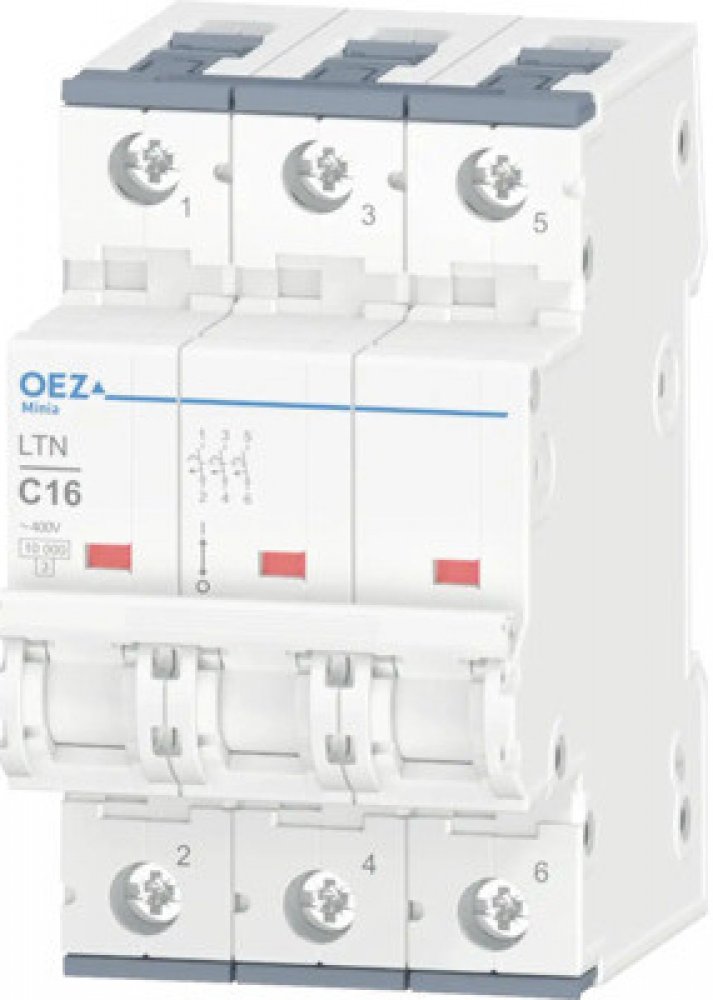 Jistič OEZ řady LTN - In 16 A, Ue AC 230/400 V / DC 216 V, charakteristika C, 3pól, Icn 10 kA