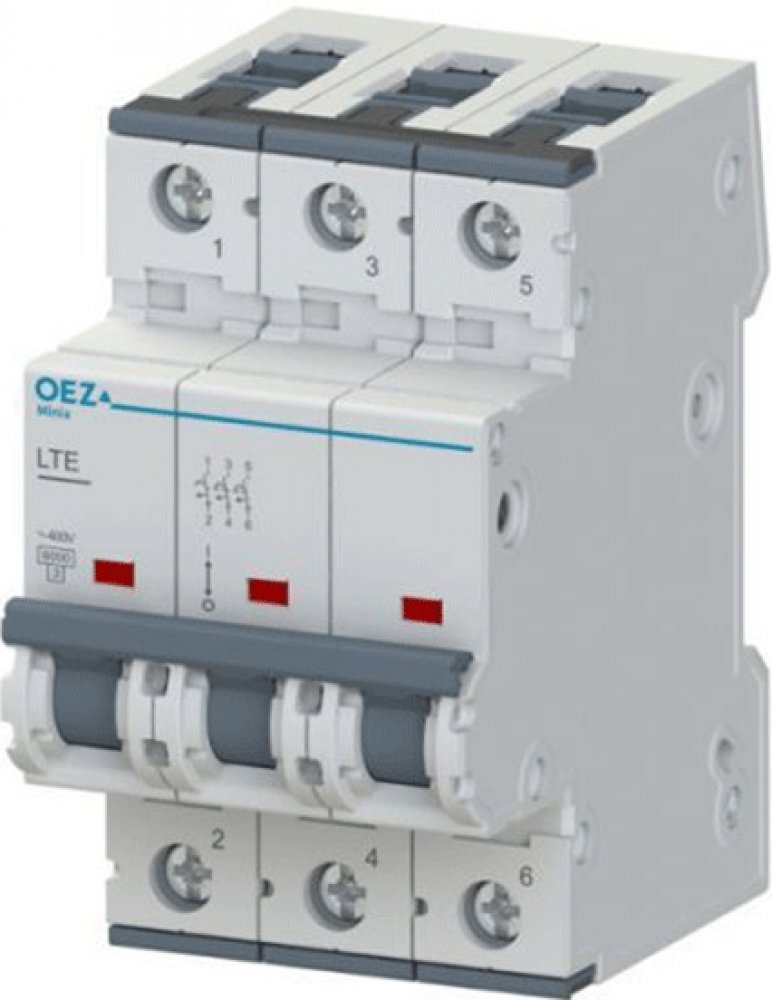 Jistič OEZ Minia LTE-16B-3 (6kA)Jištění kabelů a vodičů proti přetížení a zkratuJištění vedení elektrických obvodů se zařízeními nespôsobujúcimi proudové rázyPřívod: shora i zdolaProvozní teplota okolí: od -25 ° C do + 55 ° C Technické parametryCharakteristika: BKrytí: IP20Men.napätie: AC 230/400 V / DC 216 VMen.prúd: 16APočet pólů: 3Zkratová odolnost: 6kAZáruka: 2 rokyRozměry: 52,8 x 89,8 x 79,7 mmHmotnost: 0,481 kg