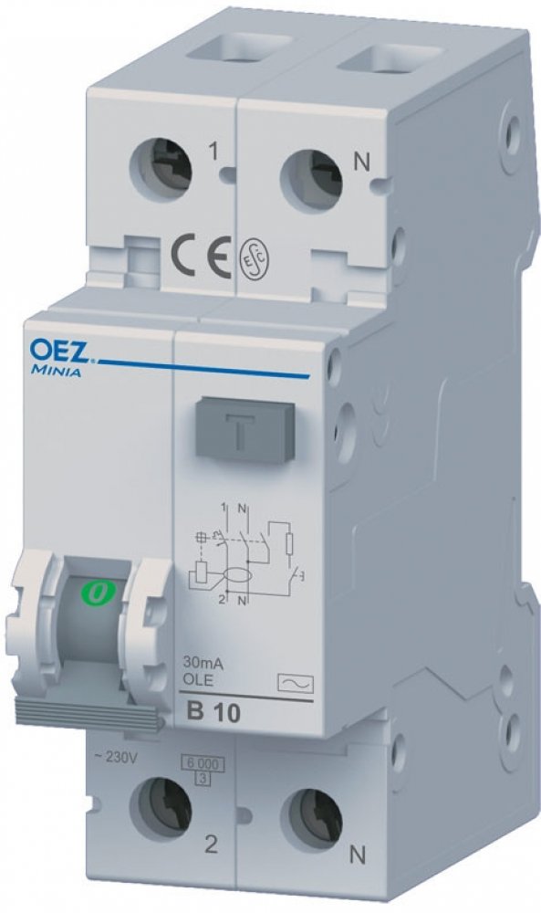 In 16 A, Ue AC 230 V, charakteristika C, Idn 30 mA, 1+N-pól, Icn 6 kA, typ AC