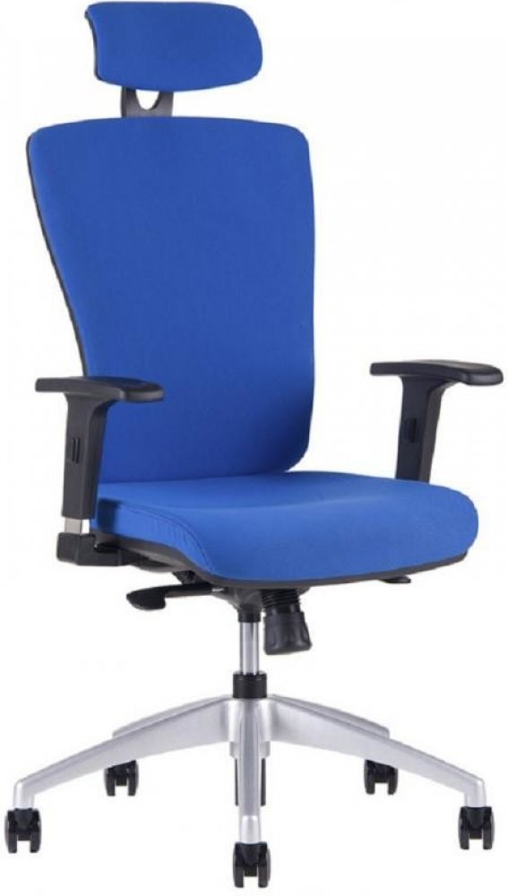 Kancelářská židle Halia SP: univerzální plastové kolečka, kovový kříž v efektu hliník, synchronní mechanika se 4 polohami aretace, čalouněný sedák a opěrák, výškově stavitelné područky, výškově stavitelná bederní opěrka, nastavitelná hlavová opěrka. Provedení viz foto.