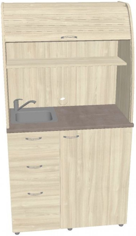 HOBIS kuchyň s dřezem, baterií a lednicí, levá - KU 3 3 L, dekor akát kuchyňská linka je určena do prostor kanceláří či jednacích místností koresponduje s kancelářským nábytkem elegantní řešení pro přípravu občerstvení spodní část tvoří chladnička o objemu 99 l a mraznička o objemu 15 l v úsporné energetické třídě A++ dvě police ve vrchní části poskytují dostatečnou kapacitu pro skleničky, hrnky či talířky nerezový dřez s baterií a přepradem o rozměrech 380x380 mm pracovní deska - dekor světlý beton hmotnost 135,29 kg výška 1890 mm šířka 1000 mm hloubka 600 mm