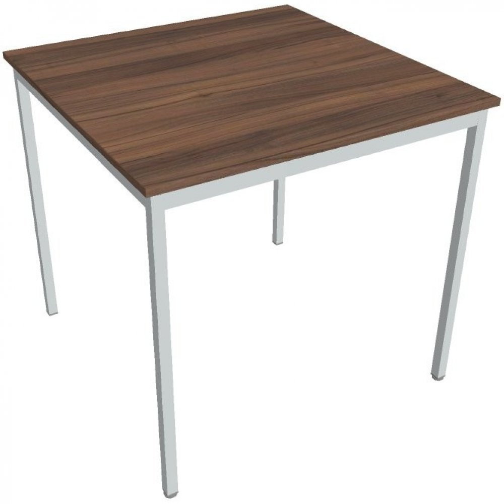 HOBIS kuchyňský stůl - HJ 800, dekor ořech kuchyňský stůl s kovovou podnoží konstrukce stolu splňuje ČSN EN ISO 9001:2016, ČSN EN ISO 14001:2016 kovová podnož vyrobena ze čtyřhranného profilu 25x25 mm stolová deska o síle 18 mm opatřena 2 mm ABS hranou rektifikační šrouby na nohách s možností dorovnání výšky až o 1,5 cm dodáváno v demontu s přehledným návodem