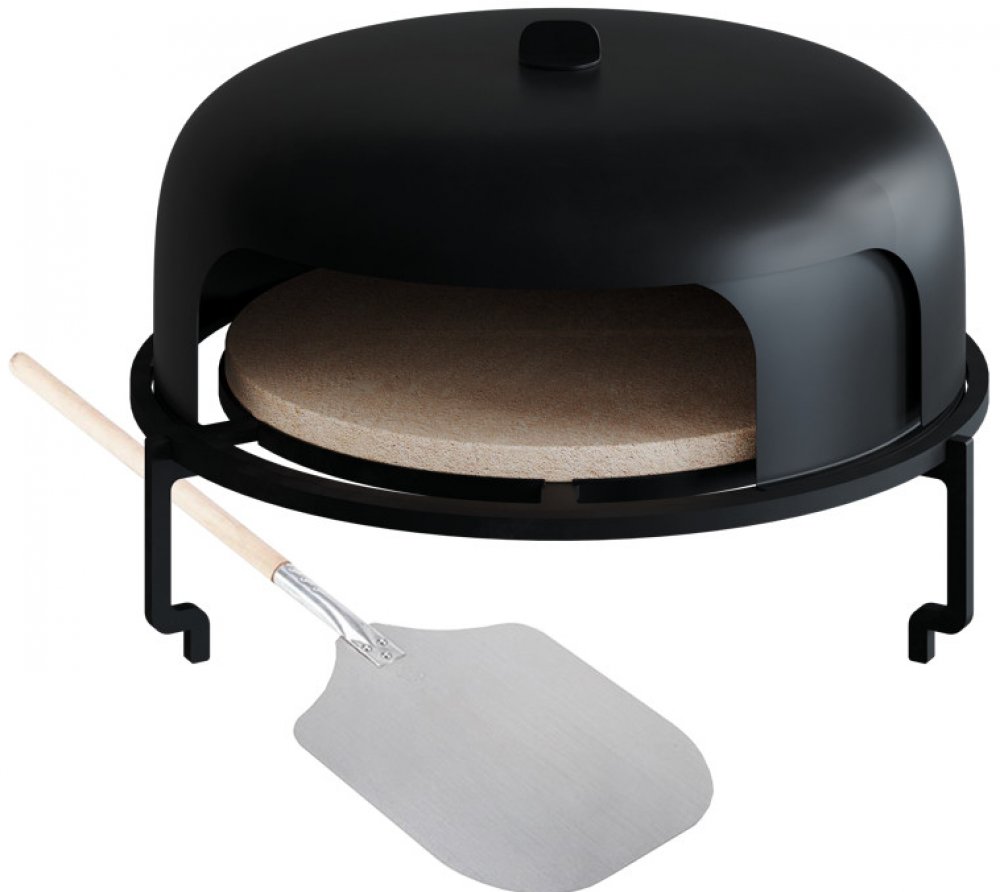 OFYR Pizza Oven je navržena tak, aby vám poskytla autentický zážitek z pečení pizzy. Díky přírodnímu ohni z pálení dřeva a unikátnímu designu je tato trouba ideální pro výrobu vynikající pizzy. Materiál Vnější a vnitřní zvon: Litina Pizza kámen: Kámen Plotna a podstavec: Ocel Pizza lopata: Hliník a dub Rozměry Celková hmotnost: 23,6 kg Vnější zvon: Ø 49 cm, Vnitřní zvon: Ø 48,8 cm Pizza kámen: Ø 41 x 1,5 cm Plotna: Ø 49,2 x 0,7 cm Podstavec: Ø 52 x 11 cm Pizza lopata: 83 x 30,5 x Ø 3 cm Vlastnosti Flexibilní Pečení: Otáčením knoflíku na plášti pece lze upravit velikost otvoru mezi vnitřním a vnějším zvonem. Bezpečnost: Pro otáčení knoflíku použijte žáruvzdorné rukavice, například OFYR Gloves. Všestrannost: Trouba je vhodná nejen na pizzu, ale i jako běžná trouba nebo grilovací deska. Kompatibilita: Trouba je k dispozici ve stejné velikosti pro modely OFYR 100. Příslušenství: Součástí balení je i lopata na vkládání pizzy. Trouba na pizzu OFYR je ideální volbou pro všechny, kteří chtějí vytvořit autentický zážitek z venkovního vaření. Od pizzy po grilování, tato trouba vám nabízí neomezené možnosti.