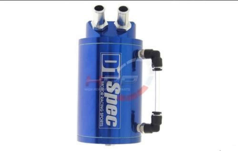 OCT separuje olej od olejové mlhy. Ten se usazuje v OCT a minimalizuje tak jeho průchod do sacího traktu. Zabraňuje tedy usazování oleje v intercooleru, ve škrtící klapce a v celém sacím traktu včetně spalovacího prostoru. Slouží tedy i jako prevence proti vytváření karbonu vně motoru.Oil catch tank D1 Spec - 2x vývod - objem 0,5l. Barva modrá.
