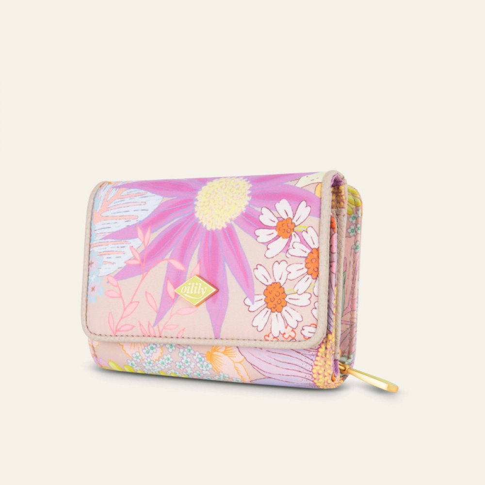 Květovaná dámská peněženka Oilily Wallet z kolekce Lucia (SS 2024).  Vybavení: Klopa se uzavírá na dva patentní knoflíky Přihrádka na mince se zapínáním na zip 2 přihrádky na bankovky 10 slotů na kreditní karty