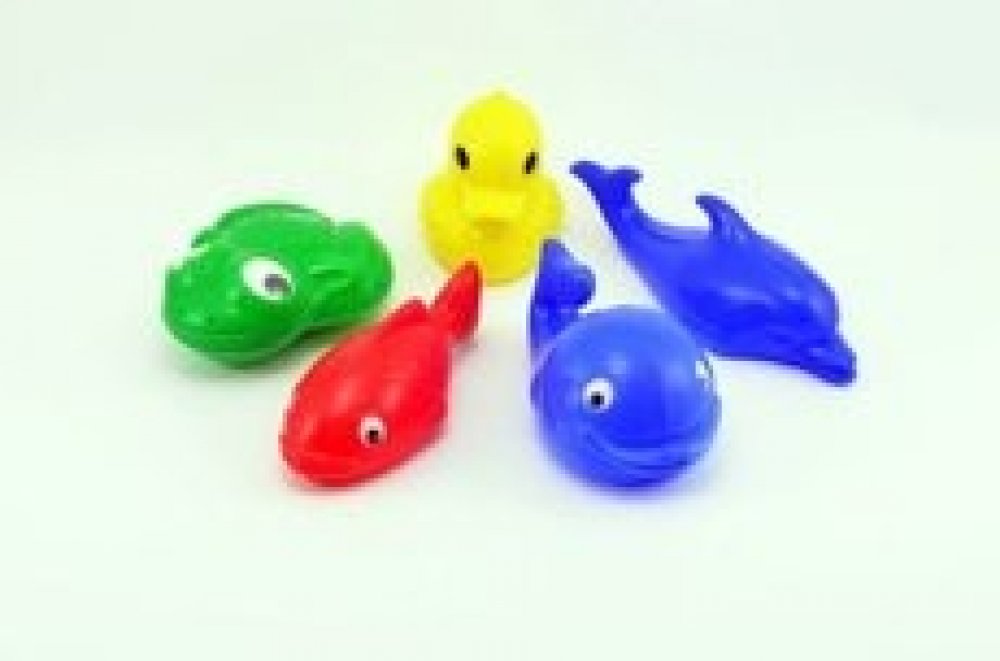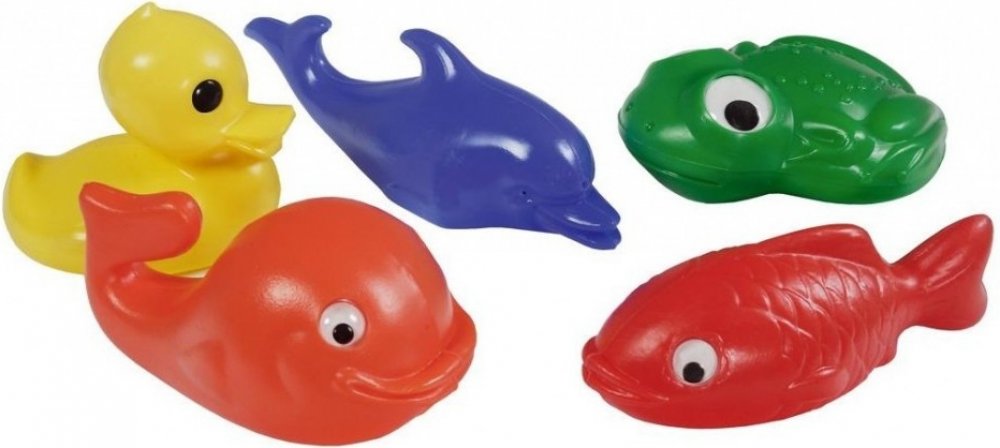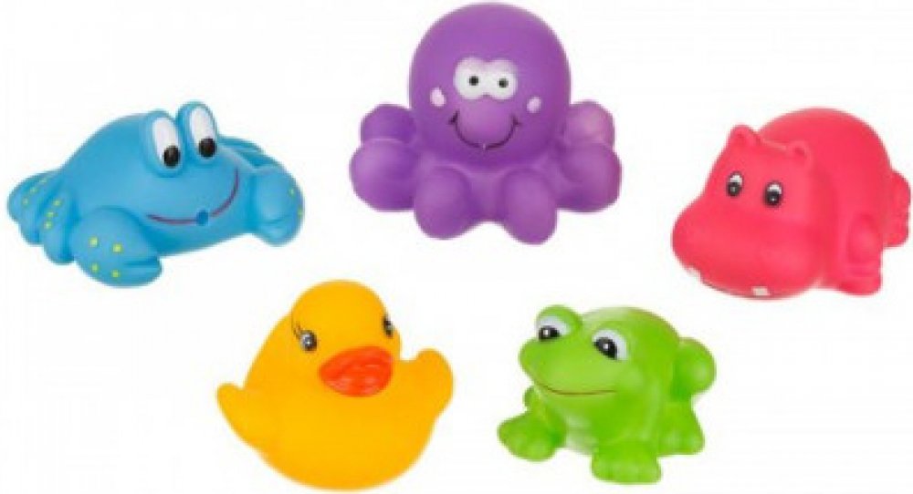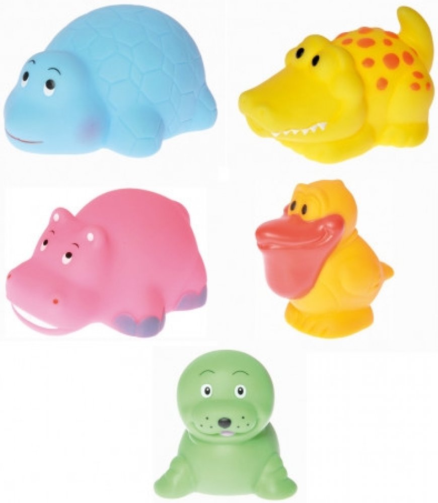 Barevné hračky do koupele Akuku. Sada 5 roztomilých barevných hraček - kachnička, žabka, hrošík, krab, chobotnice. Ideální na hraní ve vaně. Veselé barvy přitahnou pozornost našich nejmenších. Každá hračka má otvor, kterým můžete stříkat vodu. Zaoblené tvary zaručují bezpečnost během hry. Vyrobeny z bezpečných, vysoce kvalitních materiálů, neobsahují bisfenol A. Výška hraček 4 až 5 cm.