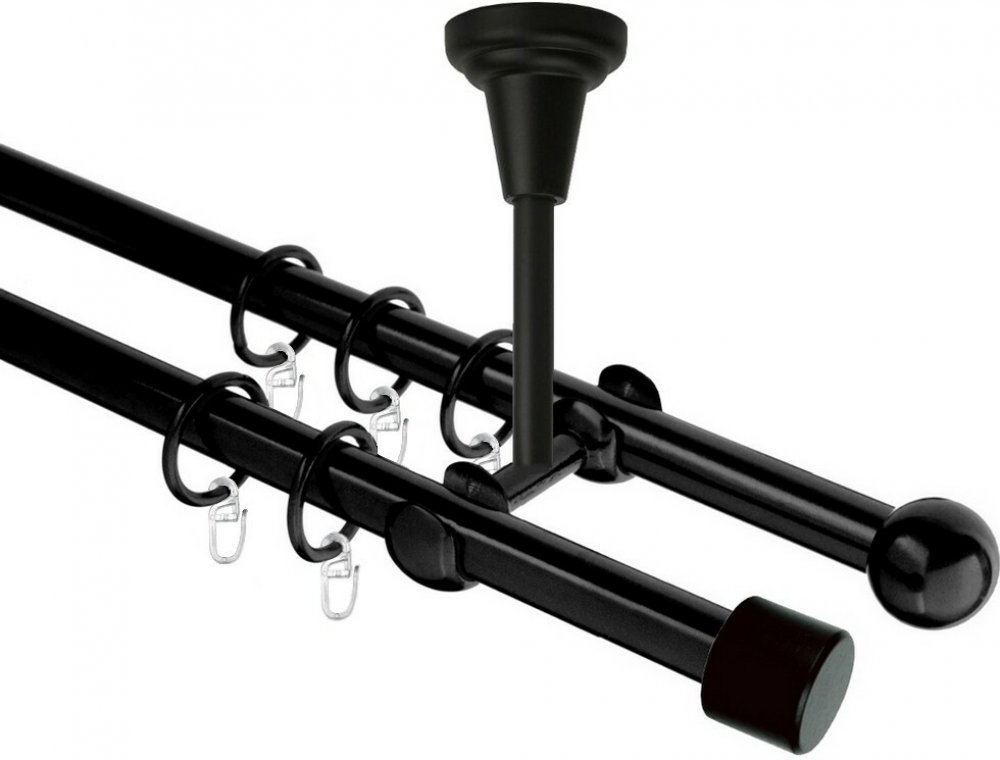 OK-GarnýžeCZ 230 cm černé kovové dvouřadé dvojtyčové