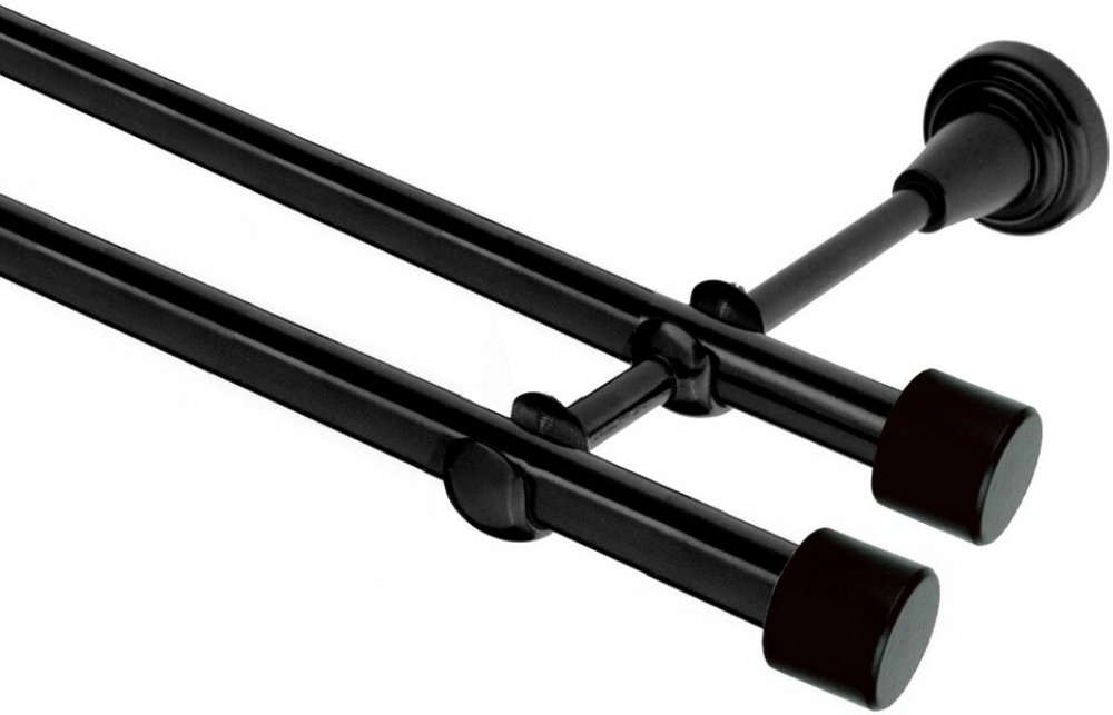 OK-GarnýžeCZ Garnýž kovová dvouřadá 16mm Pullo Double černá 300 cm do stěny / na tunýlek - bez kroužků