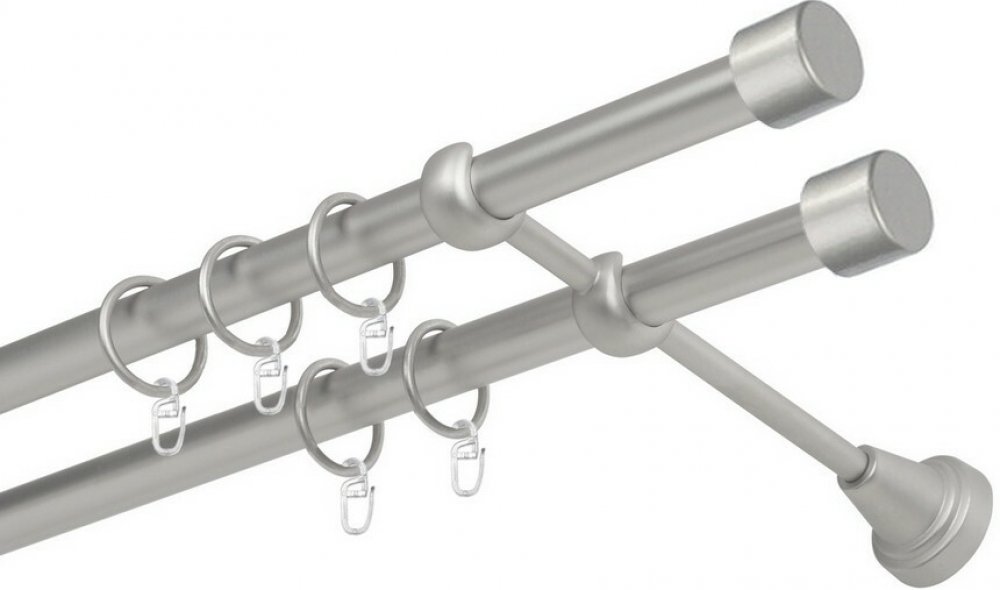 OK-GarnýžeCZ Garnýž kovová dvouřadá 16mm Pullo double satina 280 cm do stěny / kroužky s háčkem
