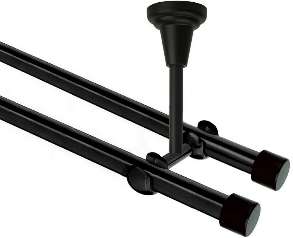 OK-GarnýžeCZ Garnýž kovová dvouřadá 19mm Pullo černá 260 cm do stropu / na tunýlek - bez kroužků