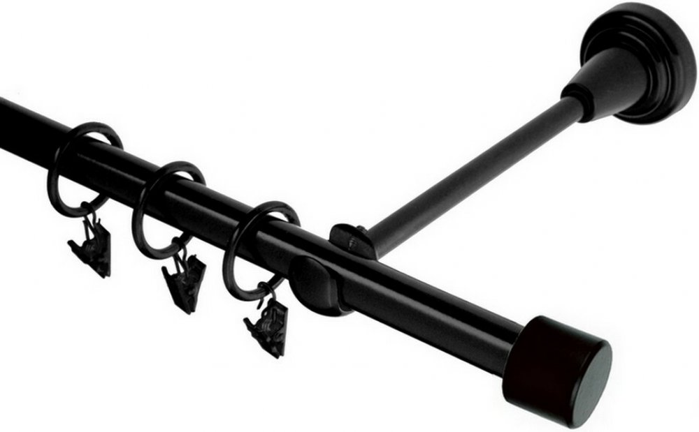OK-GarnýžeCZ Garnýž kovová jednořadá 19mm Pullo černá 280 cm do stěny / kroužky s žabkou
