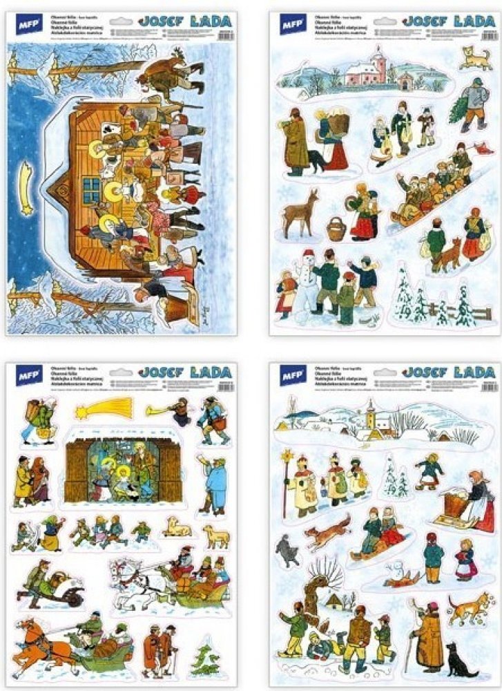 Okenní fólie - zimní motivy Josefa Lady - Vyzdobte si okno těmito krásnými samolepkami na okno. Vytvoří Vám kouzelnou atmosféru domova. NÁVOD: Sloupněte z podložky obrázek a umístěte na čisté, případně navlhčené sklo stranou, která byla na podložce. Obrázek elektrostaticky přilne. Folie se snadno sloupne a dá se přemístit. Uvedená cena je za 1 ks, dodáváme v mixu po 4 ks dle skladové zásoby.