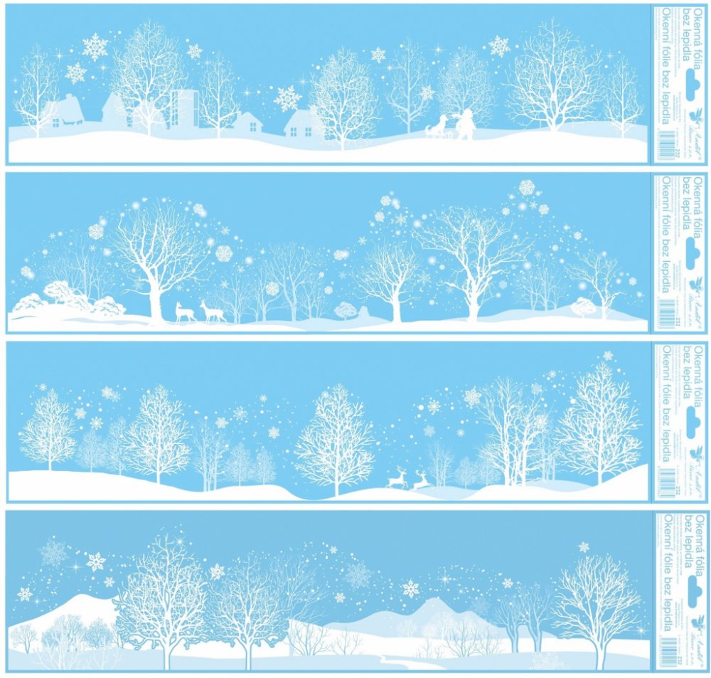Elektrostaticky přilnavá fólie bez lepidla, vhodná k dekoraci oken, na kachličky, chladničku a další hladké plochy.Fólie je průhledná, neobsahuje žádné lepidlo, na skle drží pouze elektrostaticky, takže je možné ji libovolně, opakovaně přemísťovat z místa na místo, či z okna na okno.
