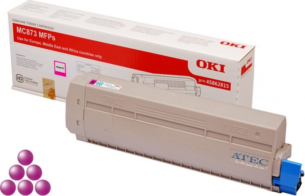Pro tisk bohatých textových dokumentů nebo marketingových materiálů je vhodný toner OKI. Tiskněte s vynikajícími výsledky na různých typech papírů pro laserové tiskárny. Objem náplně pokryje tisk 10000 stran. Náplň byla testována standardizovanou metodou a její výtěžnost odpovídá 5% pokrytí strany A4. Jde o originální toner do tiskárny zajišťující stálou kvalitu, perfektní výsledky a spolehlivý provoz. Práškové složení toneru umožňuje tisk bez obav z vyschnutí, což vám umožní tisknout i méně často. Obsah balení tvoří jednobarevná náplň. Barva toneru do tiskárny je purpurová. Zásadní vlastnosti toneru OKI 45862815 purpurový Toner do laserové tiskárny OKI zabezpečuje tisk kompletních textových dokumentů ve špičkové kvalitě Výtěžnost při 5% pokrytí strany je 10000 stran Tento toner je originál a nabízí trvale spolehlivý výkon při tisku Součástí balení je jednobarevná náplň Barva toneru do tiskárny OKI je purpurová Pro tiskárny značky: OKI MC Model tiskárny: 873, 873dn, 873dnct a 873dnv